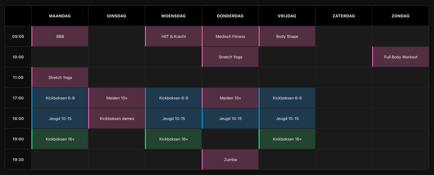 19:00 – 20:00 → Kickboksen 16+ en volwassenen
